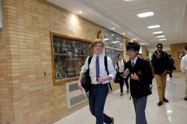 今日は火曜日、CBAへの登校2日目です。昨日、すでにスクールバディと知り合っていますので、登校、点呼、体調確認後、すぐに迎えに来たバディに連れられて授業に向かいました。授業の理解は難しいようですが、挙手や発言の多さ、体験型の授業など、全く異なる世界を肌で感じているようです。何よりも、男子校ならではの気取らない打ち解けやすい空気や、同じラ・サールファミリーという親しみやすさなど、2日目とは思えないくらいのアットホームさに救われる気がします。普段、英語が苦手な生徒でも、「予想外に英語が通じるんです」と驚いていました。校舎の至る所にあるLa Salleの文字や肖像画にも不思議な繋がりを感じます。生徒の体調も、日本からの移動の疲れから回復しつつあるように感じられます。