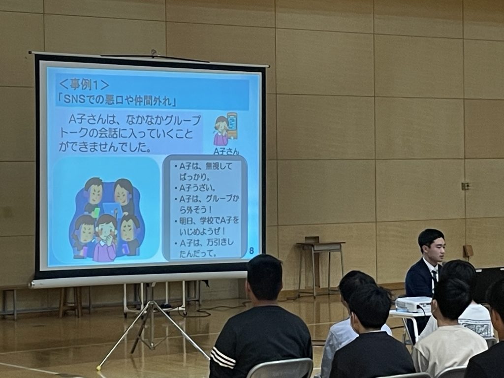 スマートフォンにまつわるトラブルや「闇バイト」の危険性・特殊詐欺などに関わることのないように実例を交えてお話しいただきました。