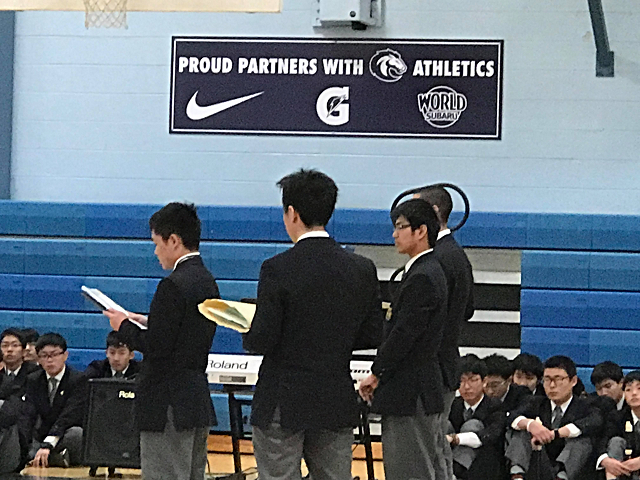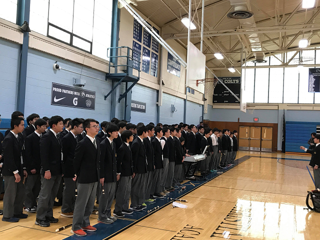 12月13日。研修旅行も7日目を迎え、旅行計画の後半に入りました。CBAの授業は今日と明日を残すのみとなりました。今朝も生徒たちは皆元気に登校し、体調面で困っている生徒はいません。CBAでは授業のない時間を見計らって昼食をとります。カフェテリアで食事をしている時の生徒の様子はとても楽しそうで、ホストバディやスクールバディとの会話がはずみ、笑顔が絶えない様子からはこの研修旅行の目的がほぼ達成されたという印象を受けます。明日はいよいよCBAでの授業体験の最終日で、午前中にはフェアウェルセレモニーがあります。生徒たちがCBAの皆さんやホストファミリーに感謝の気持ちを伝える大切な時間です。今日の午後、フェアウェルセレモニーのリハーサルを行いました。生徒たちは一生懸命に取り組んでいました。合唱では仲間をリードするように伸びのある良い声で歌っている生徒がいて、彼らからは成長を感じることができました。リコーダー演奏も回数を重ねるごとに良くなっていきました。明日が楽しみです。