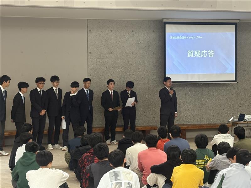 その後の質疑応答では、生徒会役員が熱心に質問に答える姿が見られました。