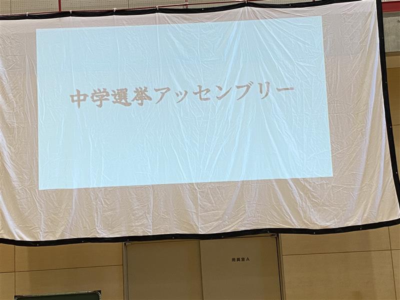 これに先立ち、10月23日(木)に高1生徒を対象に多目的ホールで、また、10月30日(木)には中学生を対象に新体育館で、それぞれ選挙アッセンブリーが行われました。